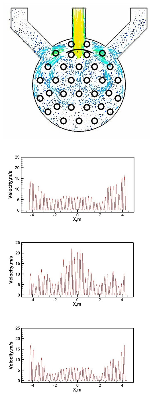 不同擋板結構蓄熱體底部中心線上速度分布